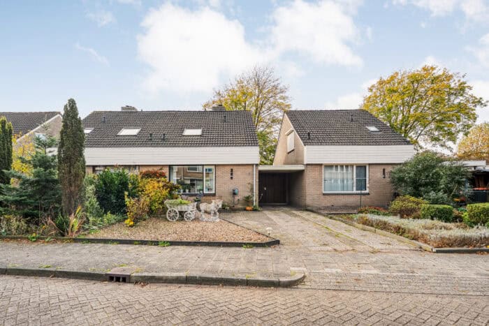 Deze speelse twee-onder-een-kapwoning uit 1978 biedt volop ruimte, een praktische indeling en een fijne ligging in een rustige, groene woonwijk.