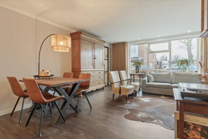 Het prettige wooncomfort van een luxe gelijkvloers benedenwoning met riant terras (65m2), eigen oprit en achteringang met de combinatie van een winkelruimte met zichtbare pui en opgang aan de straatzijde. Het appartement heeft een eigen opgang aan de andere zijde van het complex. Een fijne manier om de rust tussen ondernemen en wonen gescheiden te houden.