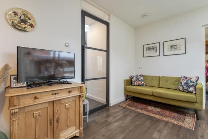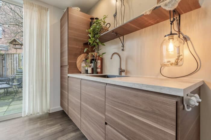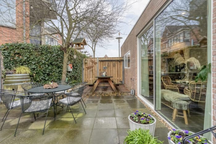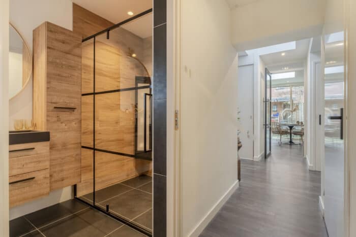 In het woongedeelte tref je aan de voorzijde de woonkamer met pelletkachel en de open keuken met eiland. De nette keuken is voorzien van de nodige inbouwapparatuur. Via de lange hal met mooie zichtlijn tref je de luxe badkamer met inloopdouche en sunshower, toilet en wastafelmeubel. De woning telt twee prima slaapkamers en een riante tuinkamer met behoorlijke schuifpui richting het omsloten terras. De tuinkamer is voorzien van keukenblok met spoelbak, koelkast en vaatwasser. Op het terras is het bij de zomerdagen puur genieten. De houten schuur geeft de mogelijkheid tot opslag van gereedschap en fietsen. Via het achterpad sta je binnen no-time weer aan de Backxlaan.