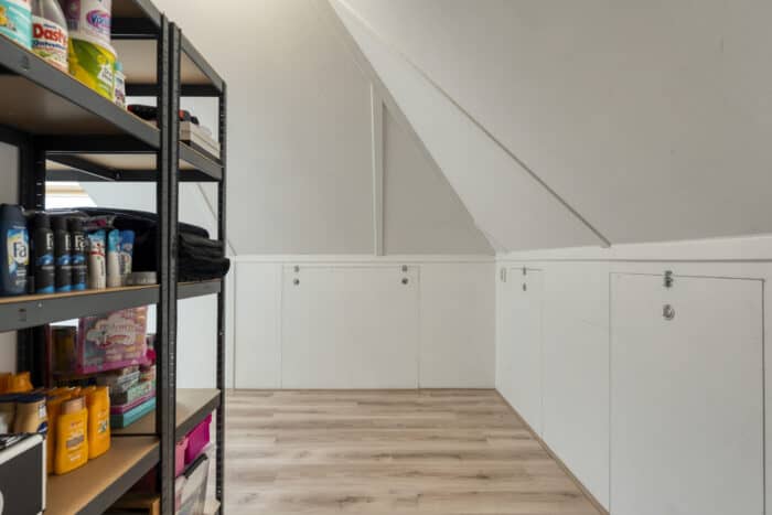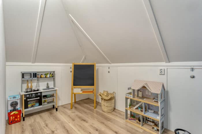 Op de eerste verdieping bevinden zich drie volwaardige slaapkamers en op de zolderverdieping zijn nog eens twee extra zolder-/slaapkamers gerealiseerd. Kortom: volop ruimte voor een gezin, thuiswerken of hobby’s.