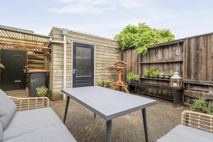 De tuin is praktisch ingedeeld, beschikt over een houten berging en een handige achterom. Aan de voorzijde vind je bovendien een knusse voortuin, die extra privacy biedt.