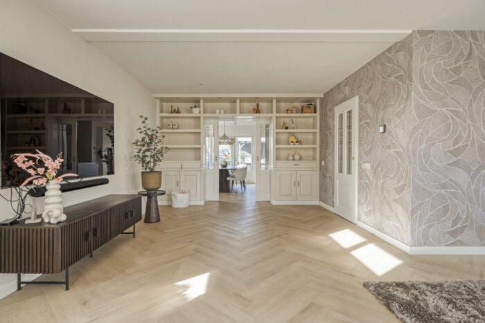 In de woning tref je een moderne woonkeuken, voorzien van de nodige inbouwapparatuur en een spoeleiland. Hier kan men úren tafelen, hier worden herinneringen gemaakt. Wat een heerlijke plek! De tuingerichte eethoek met sfeerhaard heeft een fraai uitzicht richting de achtertuin en geeft bovendien toegang tot het aaneengesloten terras. Heerlijk bij de zomerdag! Aan de voorzijde van de woning is de ruime woonkamer met eveneens een sfeerhaard. Ook een prettige plek om je even terug te trekken van de alledaagse drukte.
