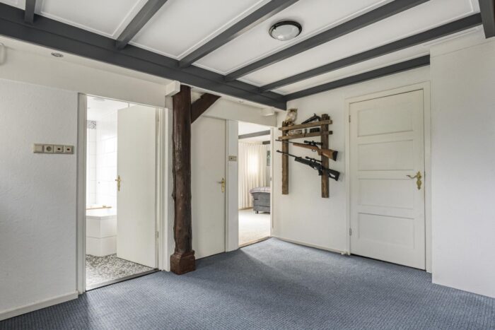 Stap de woning binnen via de zij-ingang en ervaar direct de riante hal met trapopgang. Dit is het centrale middelpunt van de woning.