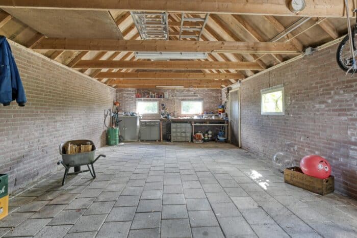 Daarnaast treft men op de kavel de twee carports, gemetselde garage, de huidige zadelkamer (mogelijk om te vormen tot gastenverblijf) en de vrijstaande paardenstalling. Aldaar zijn 6 complete paardenstallen aanwezig en een bergzolder.