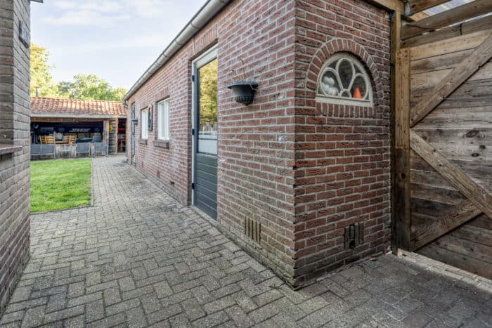 Achter in de tuin tref je de gezellige overkapping met bar-inrichting. Een heerlijke plek om de weekenden door te brengen, vrienden uit te nodigen en daarmee gezellige herinneringen te maken.